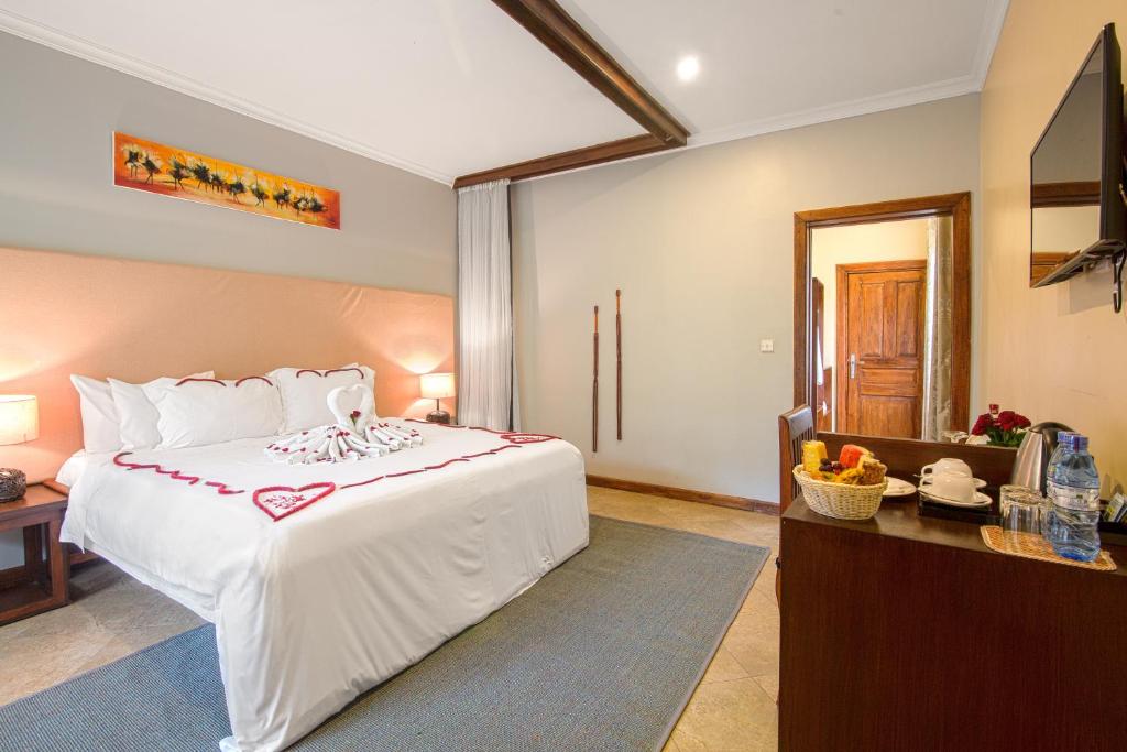 Guests can enjoy a range of on-site services and facilities, including a restaurant serving freshly prepared meals throughout the day, a bar/lounge for relaxing with a drink, and outdoor seating areas surrounded by lush gardens. For business travelers, the lodge offers conference and meeting facilities, while free Wi-Fi throughout the property ensures connectivity for all guests. Additional conveniences include 24-hour reception, airport transfers, luggage storage, laundry service, and secure parking.