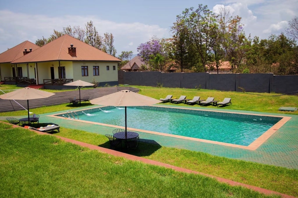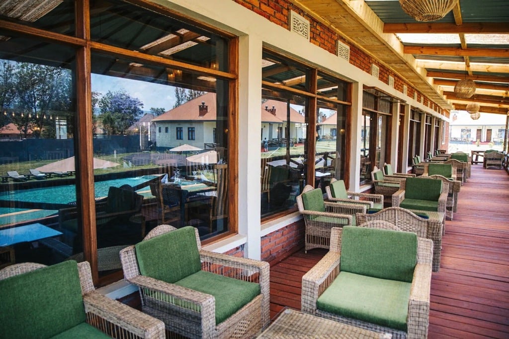 Karatu Villas features spacious private villas designed for comfort and relaxation. Each villa includes an en-suite bathroom with hot showers and modern amenities. Private terraces open onto garden or countryside views, ideal for unwinding after a day of exploration. A central dining area serves freshly prepared local and international cuisine. Guests can relax in landscaped gardens or enjoy quiet moments by the swimming pool. The tranquil setting makes it perfect for rest between safari adventures.